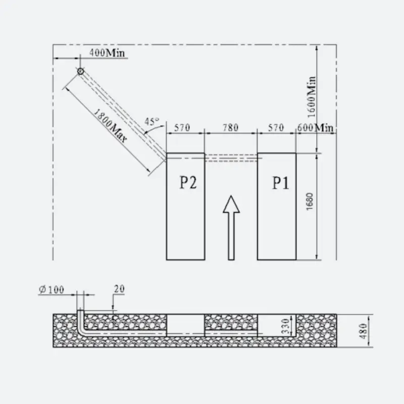 Le pont est fourni avec des tampons d’appui et des plaques de protections des passages de câbles au sol.