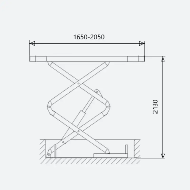 Equipé de plateaux extensibles sur les deux côtés de chaque ciseau, il permet d’obtenir une plateforme réglable de 1550mm à 1950mm afin de lui permettre d’être utilisé sur une très large gamme de véhicules.